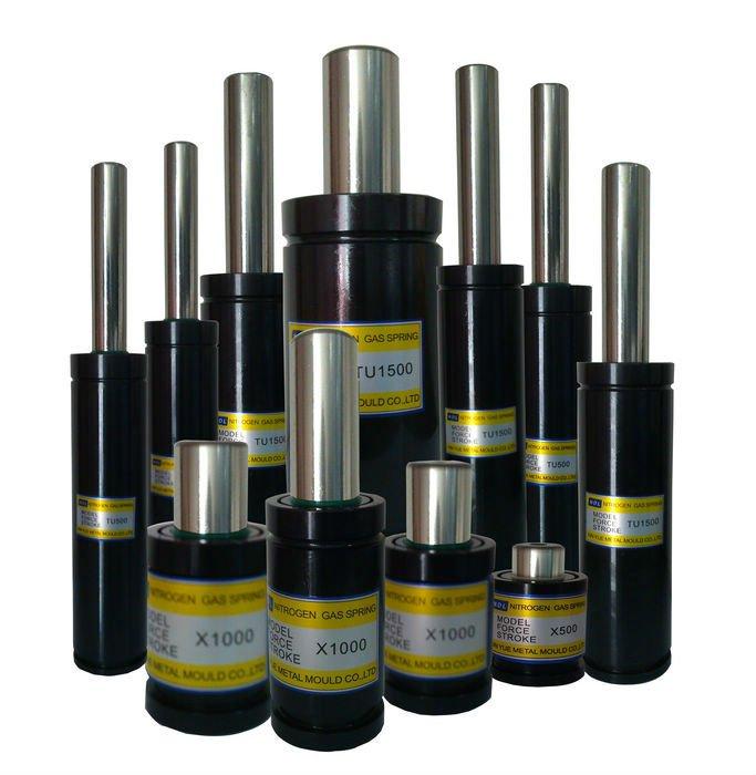 氮气弹簧是一种具有弹性功能的部件。它将高压氮气密封在确定的容器中,外力通过柱塞杆将氮气压缩,当外力去除时靠高压氮气膨胀来获得一定的弹压力,这种部件称为氮气缸或气体弹簧,简称氮气弹簧(Nitrogen Cylinder; Gas Spring)。 (又称冲模氮气弹簧或氮气弹簧或氮气缸或氮缸)氮气弹簧是以氮气为气源的一种具有弹性功能的部件。它以稳定的弹压力、较小的体积、可靠的工作性能、使用寿命长等优势正在逐渐替代弹簧、橡胶、气垫等弹性元件,在模具中使用氮气弹簧可缩小模具体积,缩短制造时间,减少试模次数和提高成功率,延长模具寿命,能大幅度的提高产品质量和成品率,有很高的经济效益。被广泛应用于冲压模,拉伸模等模具制造行业。
